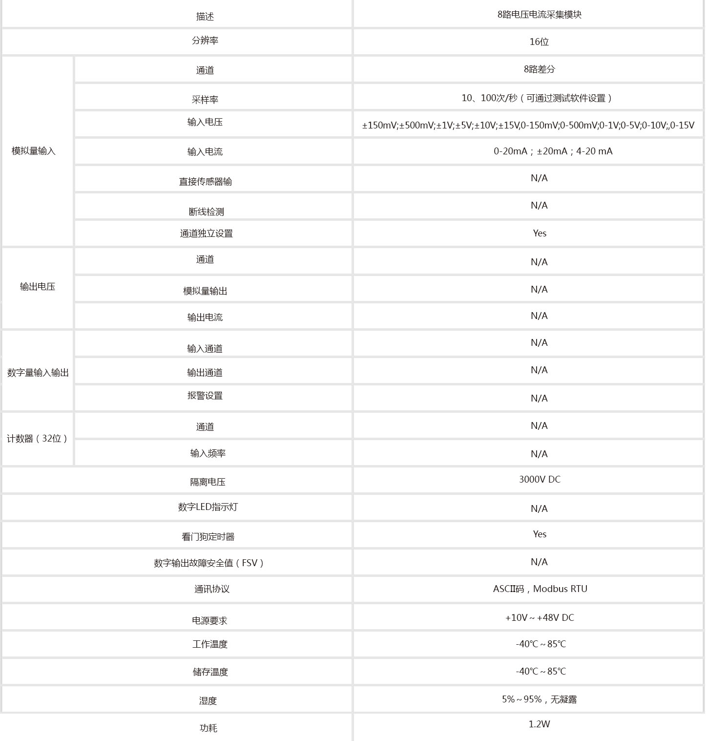 S-7117是一款高精度 8 通道模擬量輸入模塊,用于采集電流模擬量信號(hào)(4~20mA等),采樣速率10Hz,有效 抑制50Hz(或60Hz)工頻干擾,每個(gè)通道都是差分輸入,可以單獨(dú)設(shè)置自己的量程范圍,模擬量輸入通道和 模塊之間提供了3000V的隔離電壓,有效的防止模塊受到高壓沖擊時(shí)損壞,該模塊還通過了CE認(rèn)證和FCC 認(rèn)證,為工業(yè)測(cè)量和監(jiān)控提供了優(yōu)良性價(jià)比。